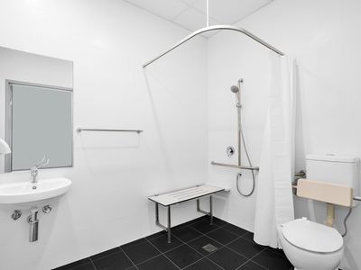 • Ground level amenities – includes a kitchenette and accessible bathroom